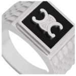 CELINE TRIOMPHE PYTHON SIGNET RING IN ONYX AND STERLING SILVER WITH RHODIUM FINISH