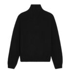 Expertly crafted from 90% wool and 10% cashmere, this Celine Triomphe Trucker Sweater in Wool and Cashmere Black-Off White combines warmth, softness, and durability. The wool ensures excellent insulation, while the cashmere adds a luxurious touch for superior comfort.