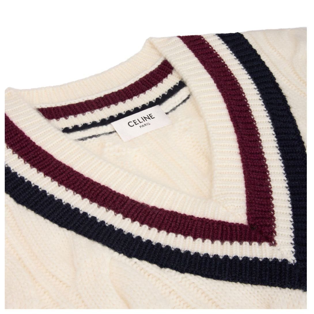 CELINE TRIOMPHE V NECK CABLE KNIT IN CASHMERE