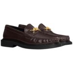 Crafted from 100% bullskin leather, these Celine Université Triomphe Chain Loaffer in Polished Bull Dark Brown offer exceptional durability and a refined texture. The 100% kidskin lining provides a soft and luxurious feel, ensuring superior comfort with every step.