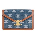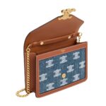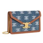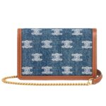 CELINE WALLET ON CHAIN MARGO IN DENIM WITH TRIOMPHE ALL OVER EMBROIDERY AND CALFSKIN