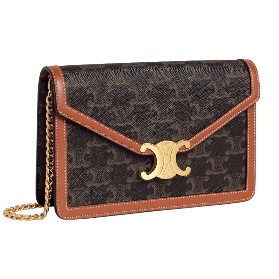 CELINE WALLET ON CHAIN MARGO IN TRIOMPHE CANVAS AND CALFSKIN