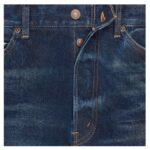 A traditional five-pocket design ensures practical storage while maintaining a timeless denim style. Rivets on the front pockets enhance durability and reinforce the rugged design.