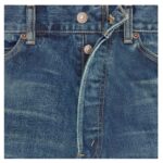 A classic five-pocket design offers practicality and versatility, with rivets on the front pockets reinforcing durability and maintaining an authentic denim aesthetic.