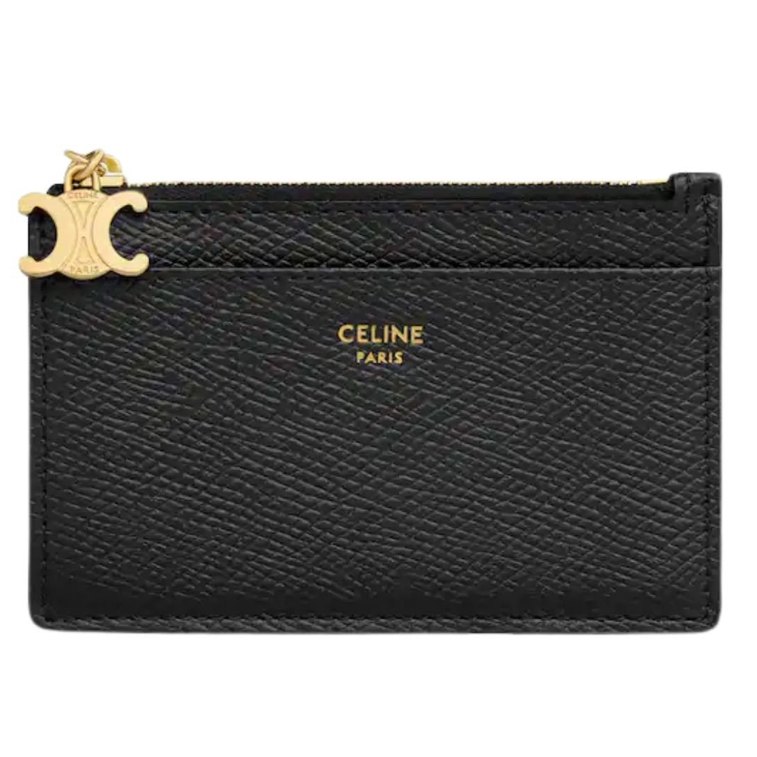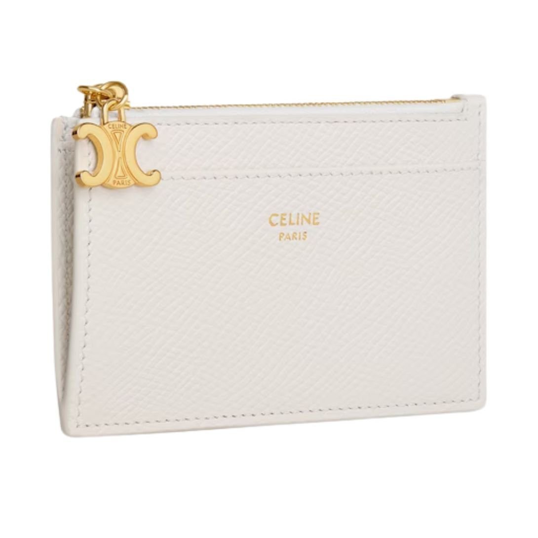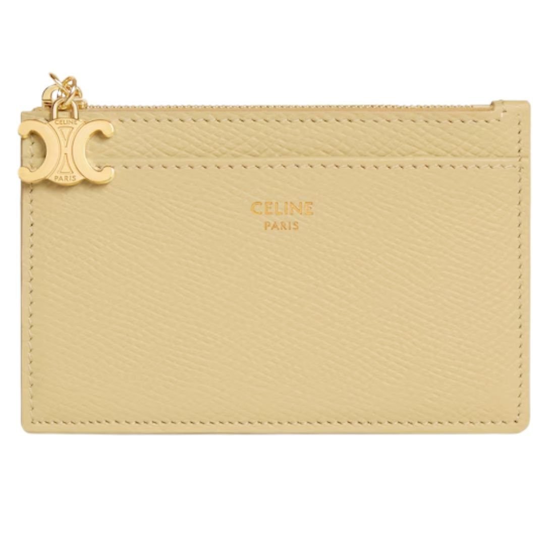 CELINE ZIPPED CARD HOLDER TRIOMPHE CHARMS IN GRAINED CALFSKIN RICE