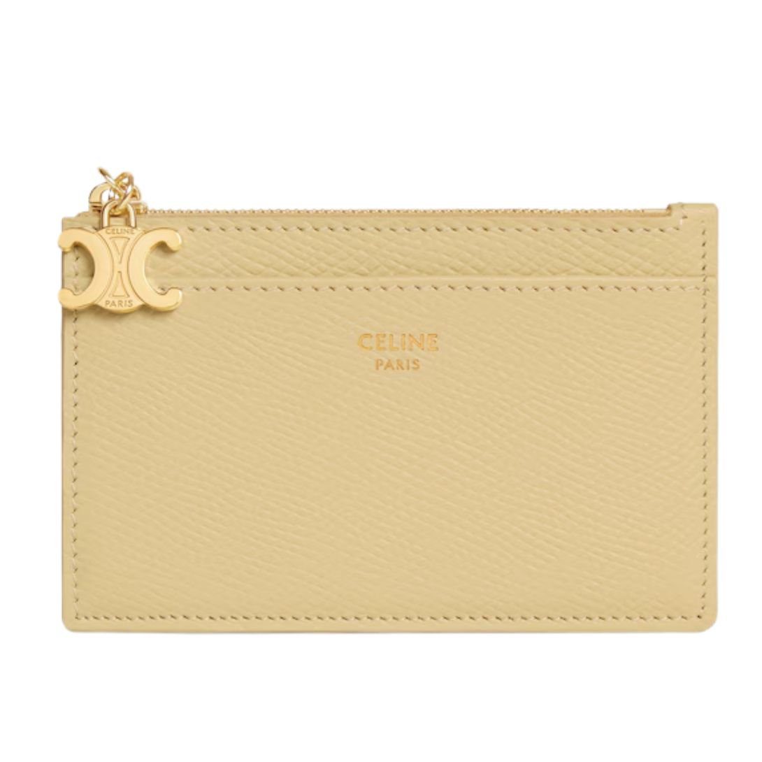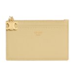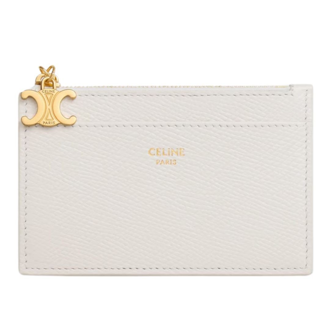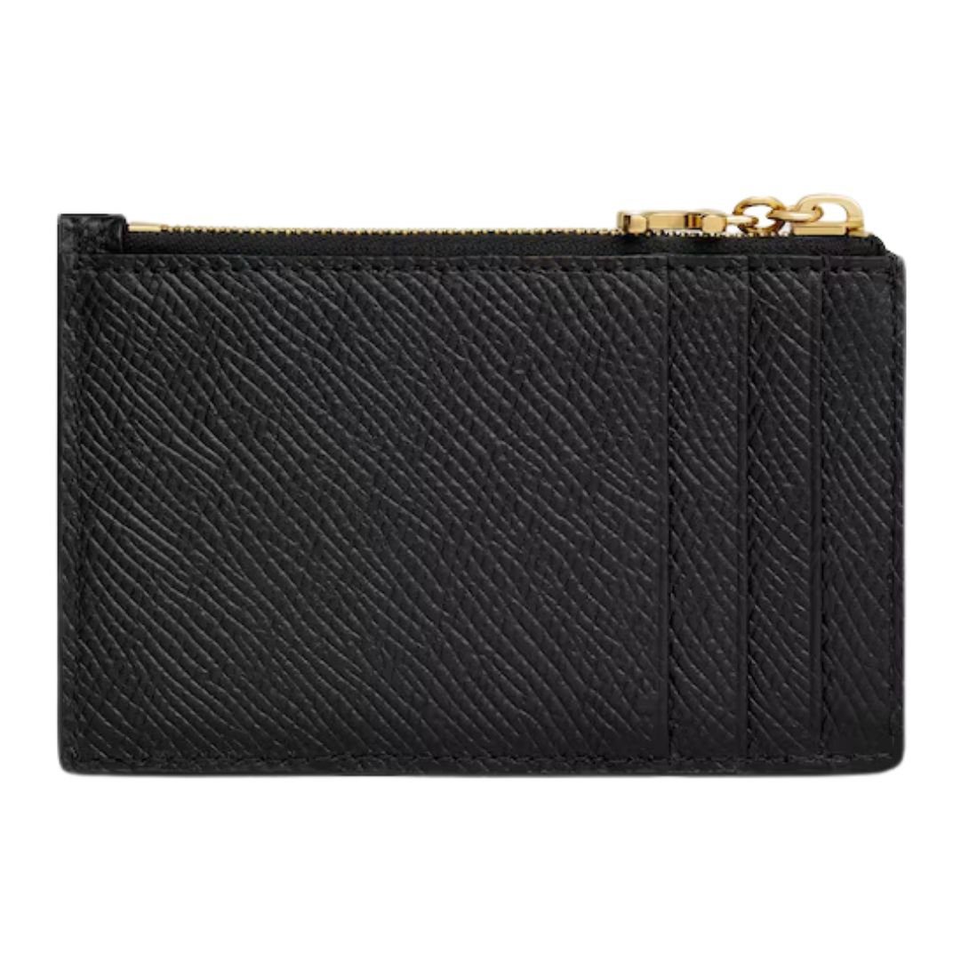 Designed with luxurious calfskin, this Celine Zipped Card Holder Triomphe Charms in Shiny Calfskin Black offers a soft, refined texture while ensuring durability. The matching calfskin lining enhances the smooth feel and provides a high-end finish.