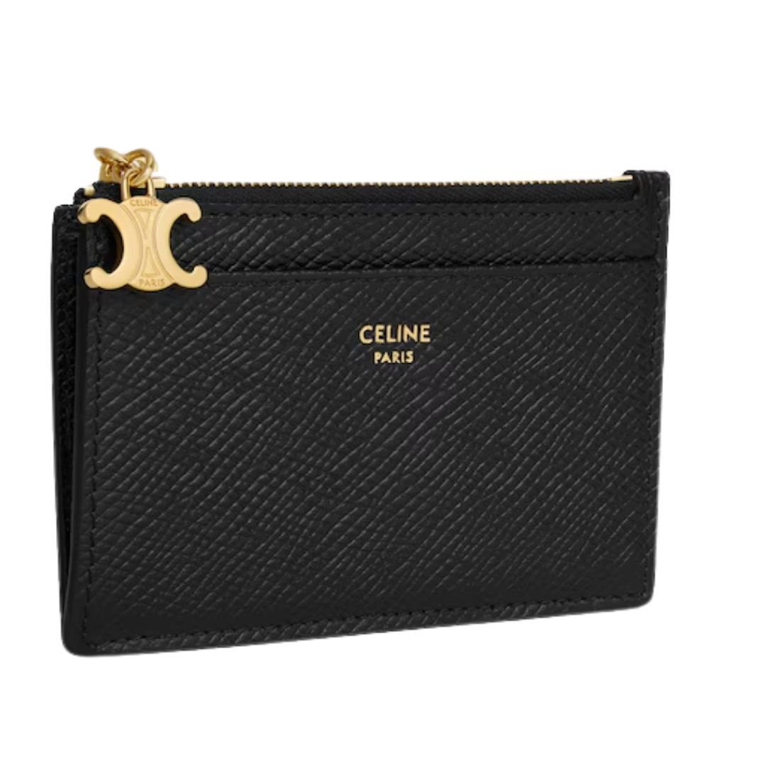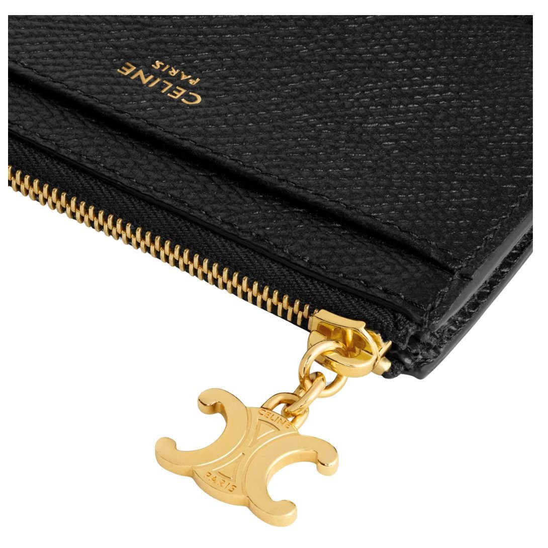 CELINE ZIPPED CARD HOLDER TRIOMPHE CHARMS IN SHINY CALFSKIN BLACK