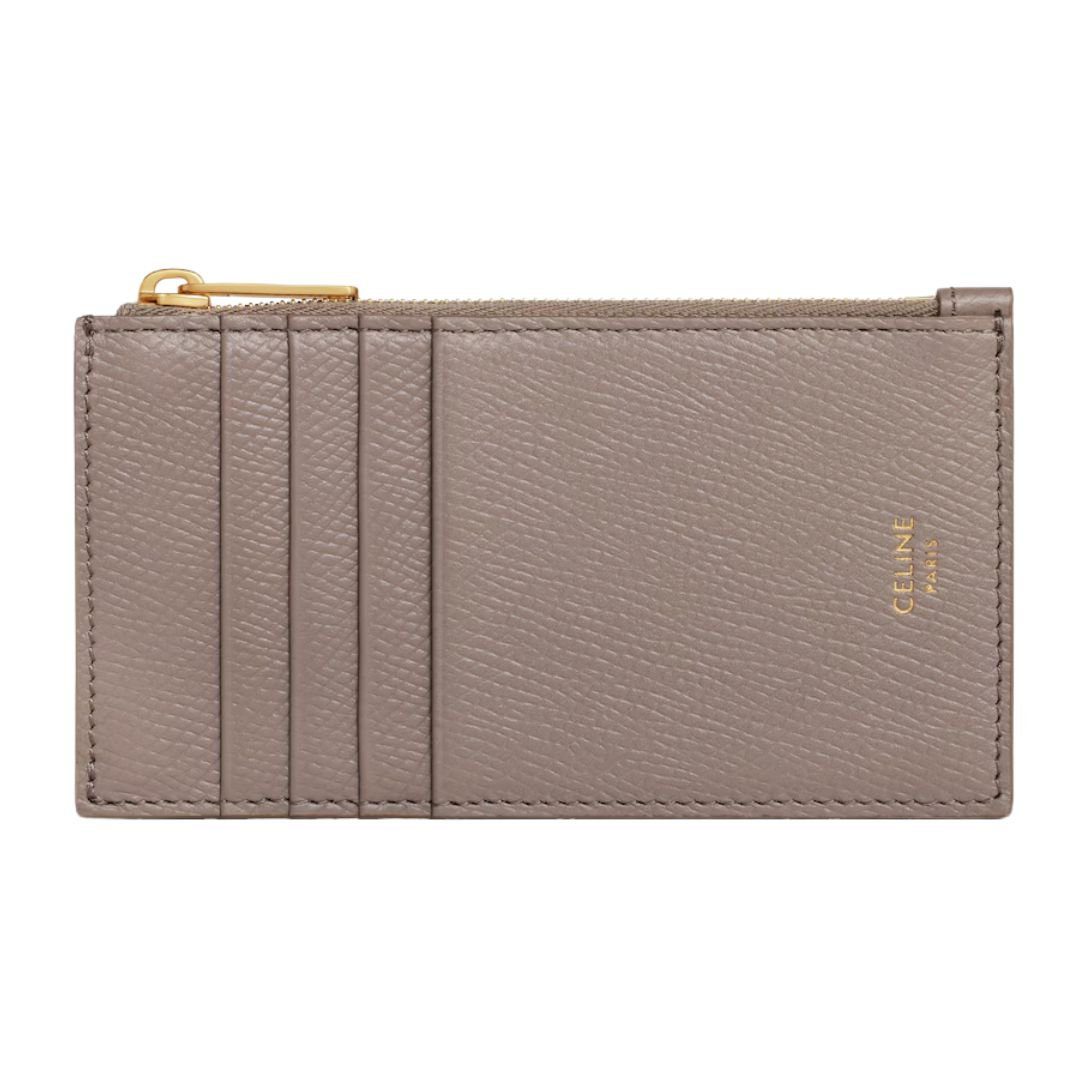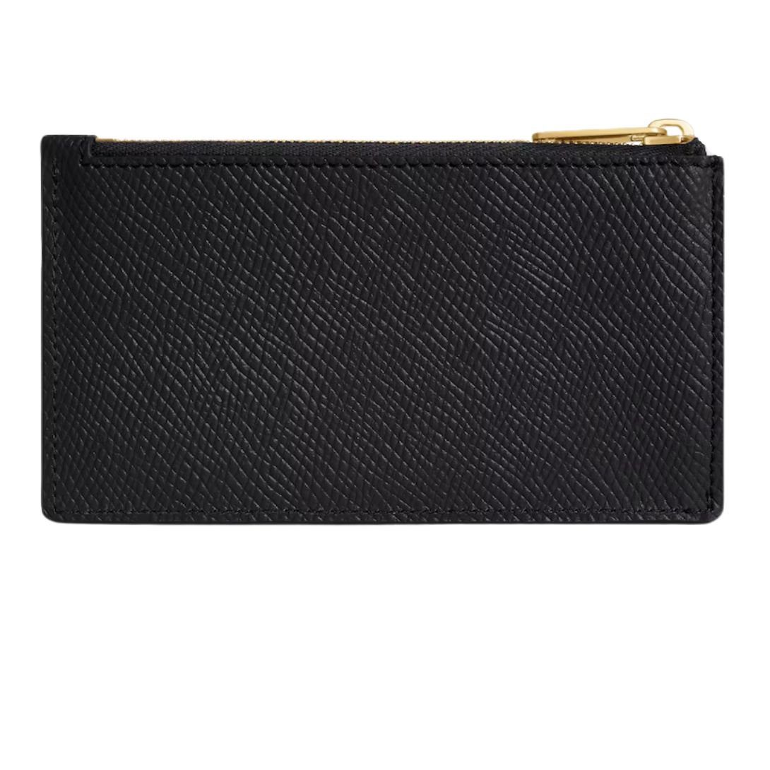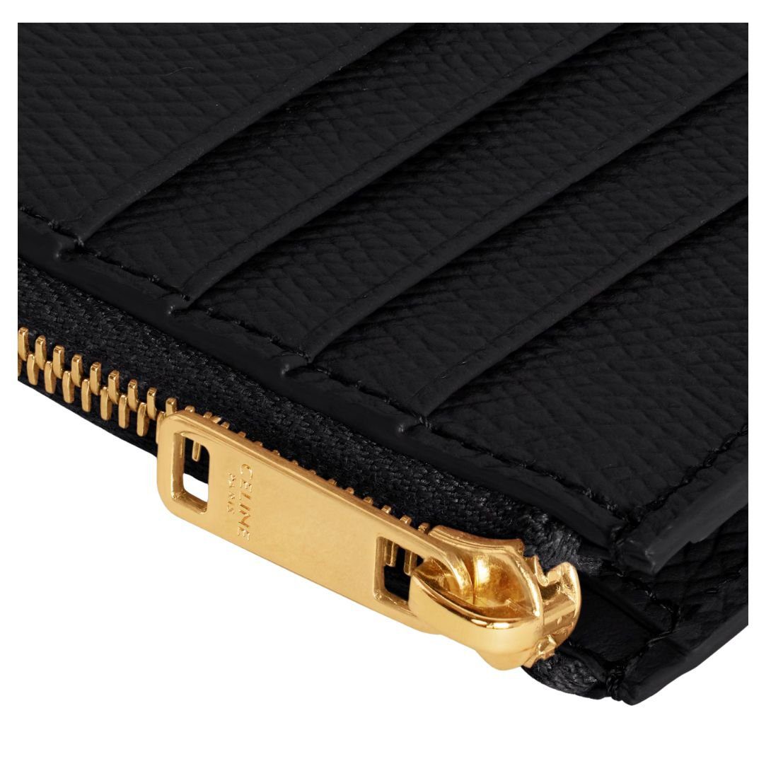CELINE ZIPPED COMPACT CARD HOLDER ESSENTIALS IN GRAINED CALFSKIN BLACK