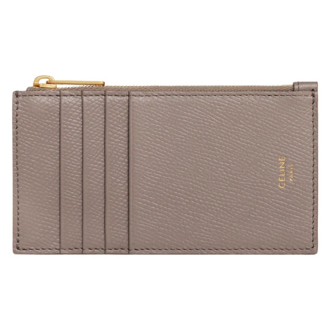 CELINE ZIPPED COMPACT CARD HOLDER ESSENTIALS IN GRAINED CALFSKIN PEBBLE