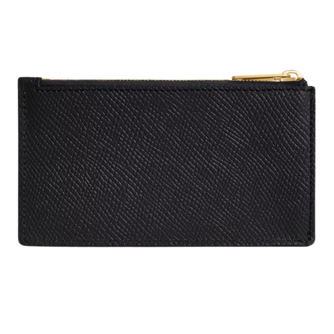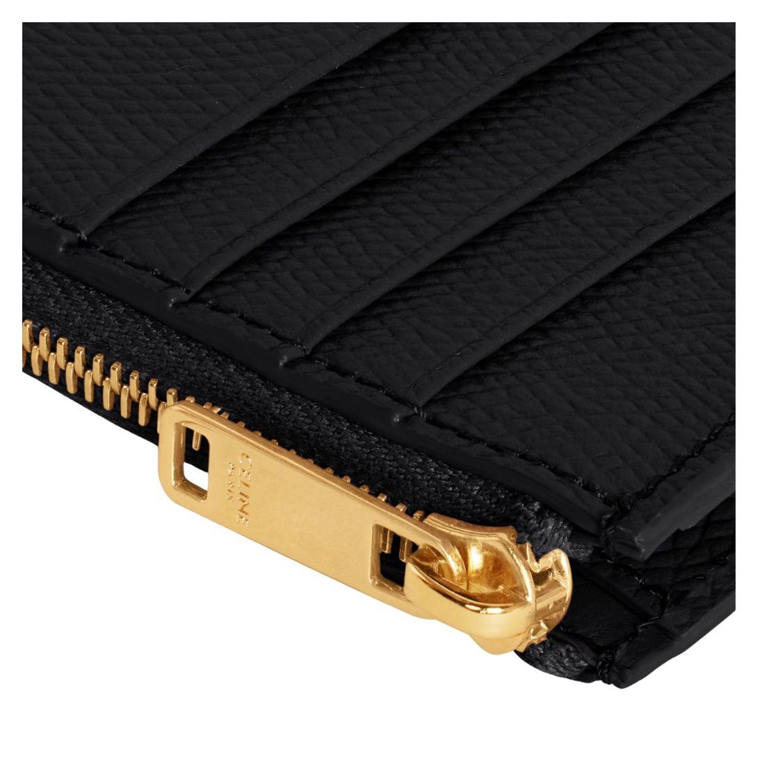 CELINE ZIPPED COMPACT CARD HOLDER ESSENTIALS IN GRAINED CALFSKIN BLACK