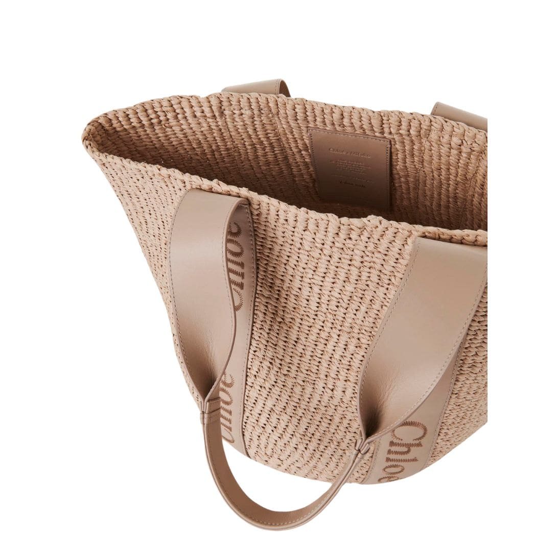At the heart of the Woody line lies the iconic Chloé logo, elegantly embroidered onto the fair-trade paper and calfskin of the large basket. This subtle yet distinctive detail serves as a hallmark of the Maison’s renowned craftsmanship and attention to detail, adding a touch of luxury to the understated design.