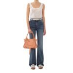 The Chloe Marcie Small Double Carry Bag Terracotta Pink. offers a compact and stylish interpretation of the iconic Marcie handbag, crafted from luxurious grained calfskin adorned with a multicolour tassel in suede calfskin and nappa lambskin. Its clean lines and contoured design accentuate the slouchy silhouette, while hand-wrapped leather handles add an artisanal touch to its overall aesthetic. The X-shaped buckles provide a refined finish, lending a subtle yet distinctive element to the bag’s design.
