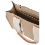 Crafted with meticulous attention to detail, the Chloe Medium Woody Tote Bag White & Beige. exudes an air of understated luxury. Constructed from lower-impact linen canvas and adorned with shiny calfskin strips, this tote bag seamlessly combines sustainability with sophistication.