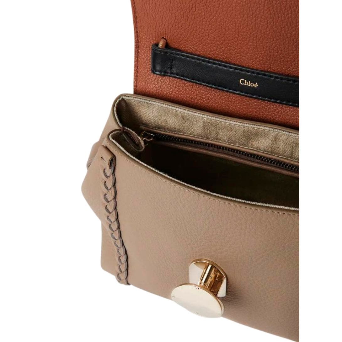 The Chloe Penelope Small Soft Shoulder Bag Woodrose. epitomizes understated elegance, meticulously crafted from naturally grained bull leather with a velvety smooth texture. Its rounded flap silhouette exudes a relaxed yet feminine allure, perfect for the contemporary woman who values both style and versatility.