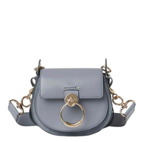 Crafted with meticulous attention to detail, the Chloe Small Tess Bag Storm Blue. epitomizes sophistication and versatility. Its elegant combination of shiny calfskin and suede calfskin creates a luxurious texture that exudes timeless charm. The bag’s round silhouette, a hallmark of Chloe’s design ethos, reflects the brand’s DNA with grace and poise.