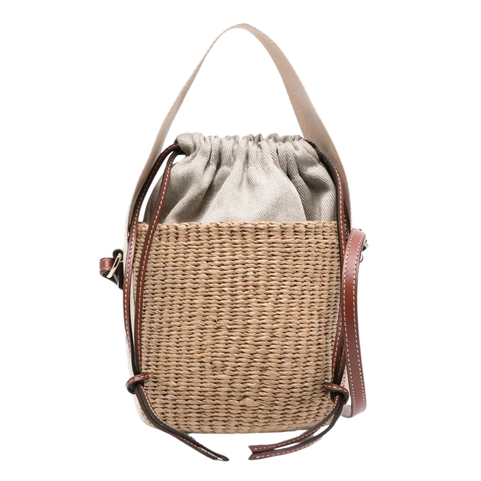 The Small Woody Basket Bag blends relaxed charm with refined detailing. Its lightweight raffia construction provides an airy, natural texture, while the structured design ensures durability and shape. The contrasting canvas handles, adorned with the iconic Chloé logo, add a statement touch while reflecting the brand’s distinct identity. Despite its compact size, the bag offers a surprisingly spacious interior—perfect for carrying daily essentials such as a phone, wallet, sunglasses, or small accessories.