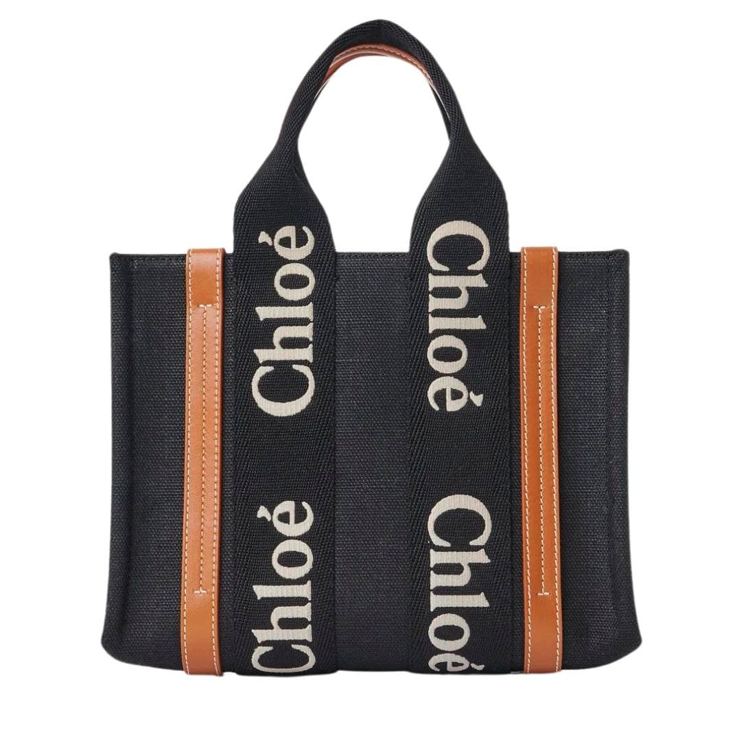 CHLOE SMALL WOODY TOTE BAG BLACK AND BEIGE