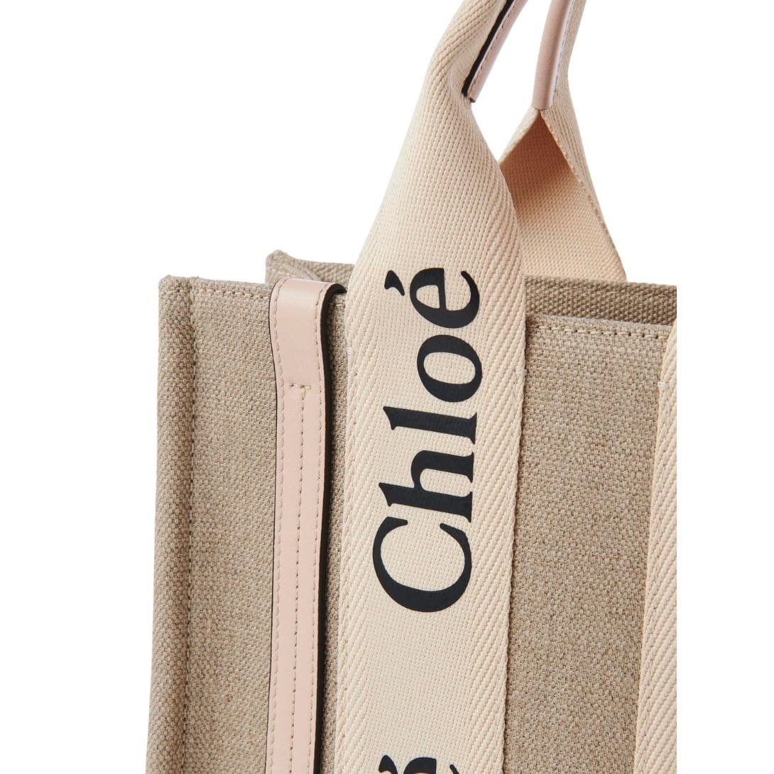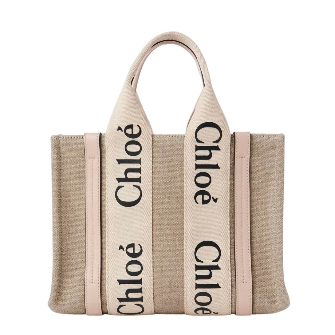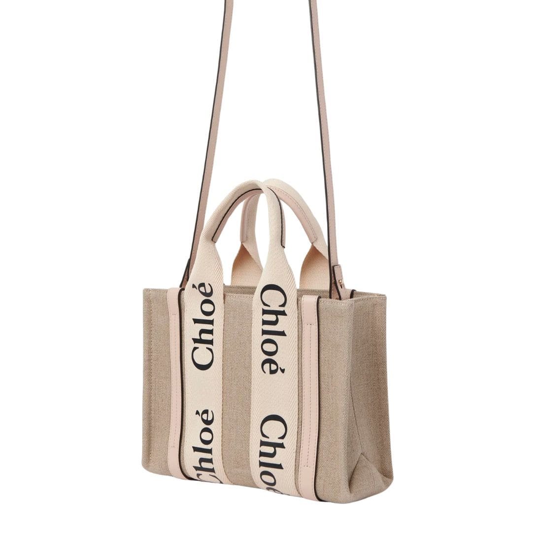 Crafted with meticulous attention to detail, the CHLOE Small Woody Tote Bag Cement Pink embodies sophistication and versatility in its design. Comprising a harmonious fusion of linen canvas and glossy calfskin accents, this small yet elegant accessory exudes a timeless appeal. The combination of these materials not only adds textural interest but also underscores Chloe’s commitment to sustainable practices by incorporating environmentally conscious elements.