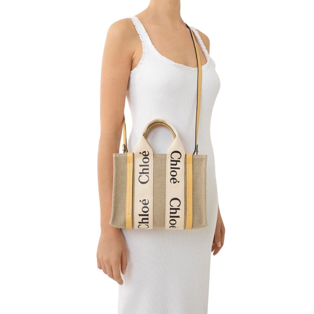 Crafted with meticulous attention to detail, the CHLOE Small Woody Tote Bag Honey Gold embodies sophistication and versatility in its design. Comprising a harmonious fusion of linen canvas and glossy calfskin accents, this small yet elegant accessory exudes a timeless appeal. The combination of these materials not only adds textural interest but also underscores Chloe’s commitment to sustainable practices by incorporating environmentally conscious elements.