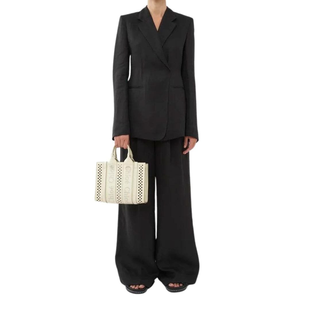 Versatility is key with the Woody bag; wear it on your arm, sling it over your shoulder, or opt for a cross-body style to suit any occasion. Its modern silhouette is accentuated by vertical leather strips and the signature Chloe logo ribbon, reminiscent of the Maison’s iconic Woody mule.