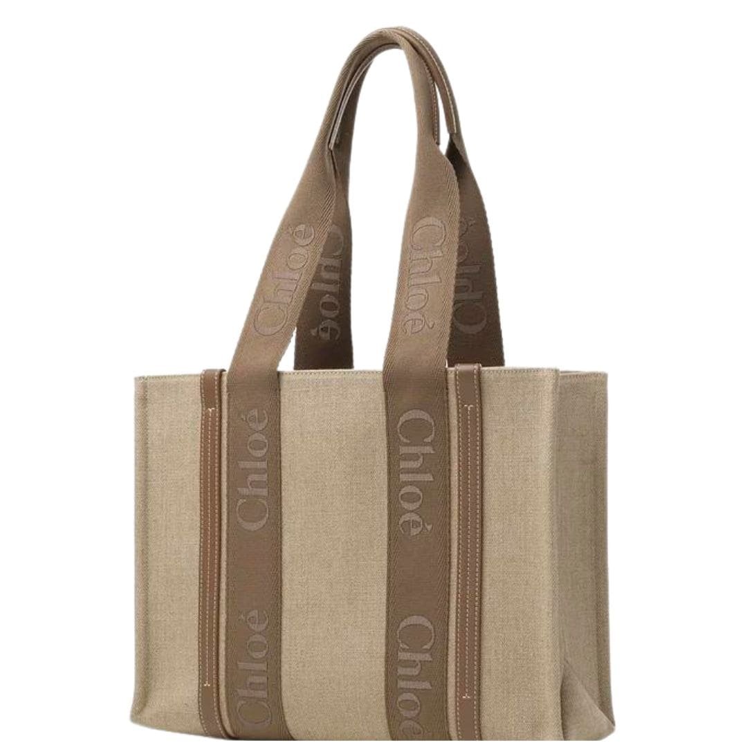 CHLOE WOODY TOTE BAG IN LINEN DARK NUT
