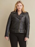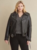 Belted leather waist.