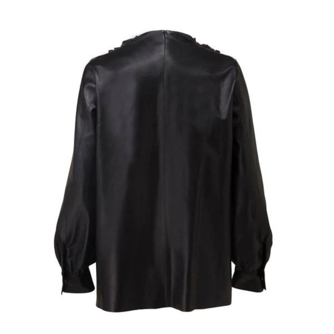 Dodo Bar or Bilbi Shirt is made from smooth leather and features an oversized collar and cuffed sleeves.