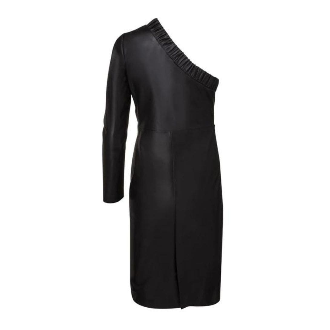 The Dodo Bar OR Gorgiee dress is crafted from 100% leather and features a one-shoulder design with elasticated crinkled details at the top.