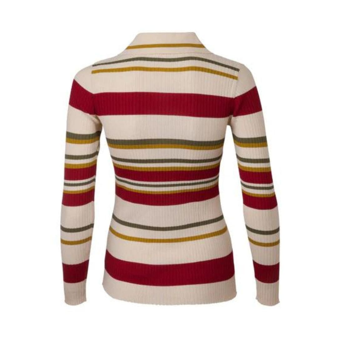 The doDO BAR OR Penny Knit Shirt’ is designed for a tight fit and features knitted stripes, an accentuated collar, and a buttoned top.