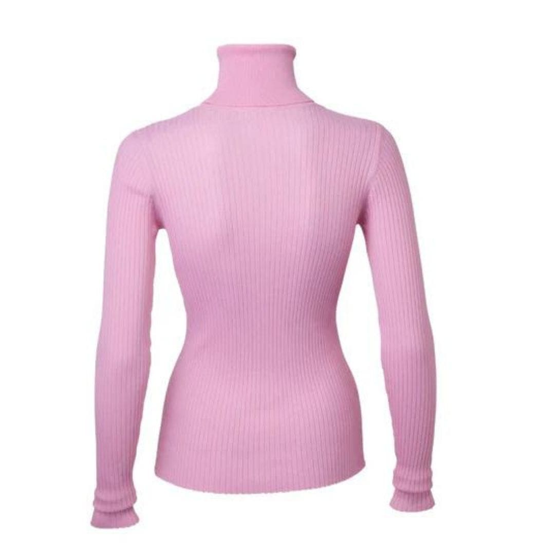 The Dodo Bar or Stacy Turtleneck  is crafted from a blend of 85% viscose and 15% nylon, featuring a tight fit with a turtleneck and ribbed detailing.