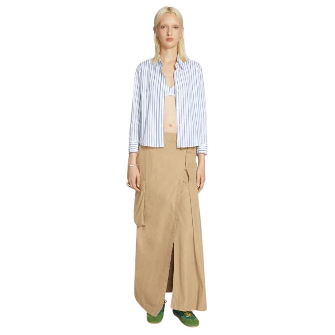 The use of striped cotton fabric not only enhances the shirt’s versatility but also reflects Dries Van Noten’s commitment to using premium materials that offer both comfort and durability. Each seam and stitch is crafted with precision, ensuring a garment that not only looks impeccable but also withstands the test of time.