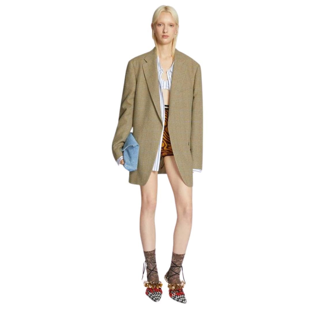 Step into sophistication and style with the Dries Van Noten Checked Blazer Dessin B. Crafted with meticulous attention to detail, this exquisite piece is made from a luxurious blend of 53% viscose and 47% cotton, with a lining composed of 100% viscose, ensuring both comfort and quality.