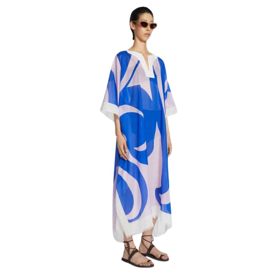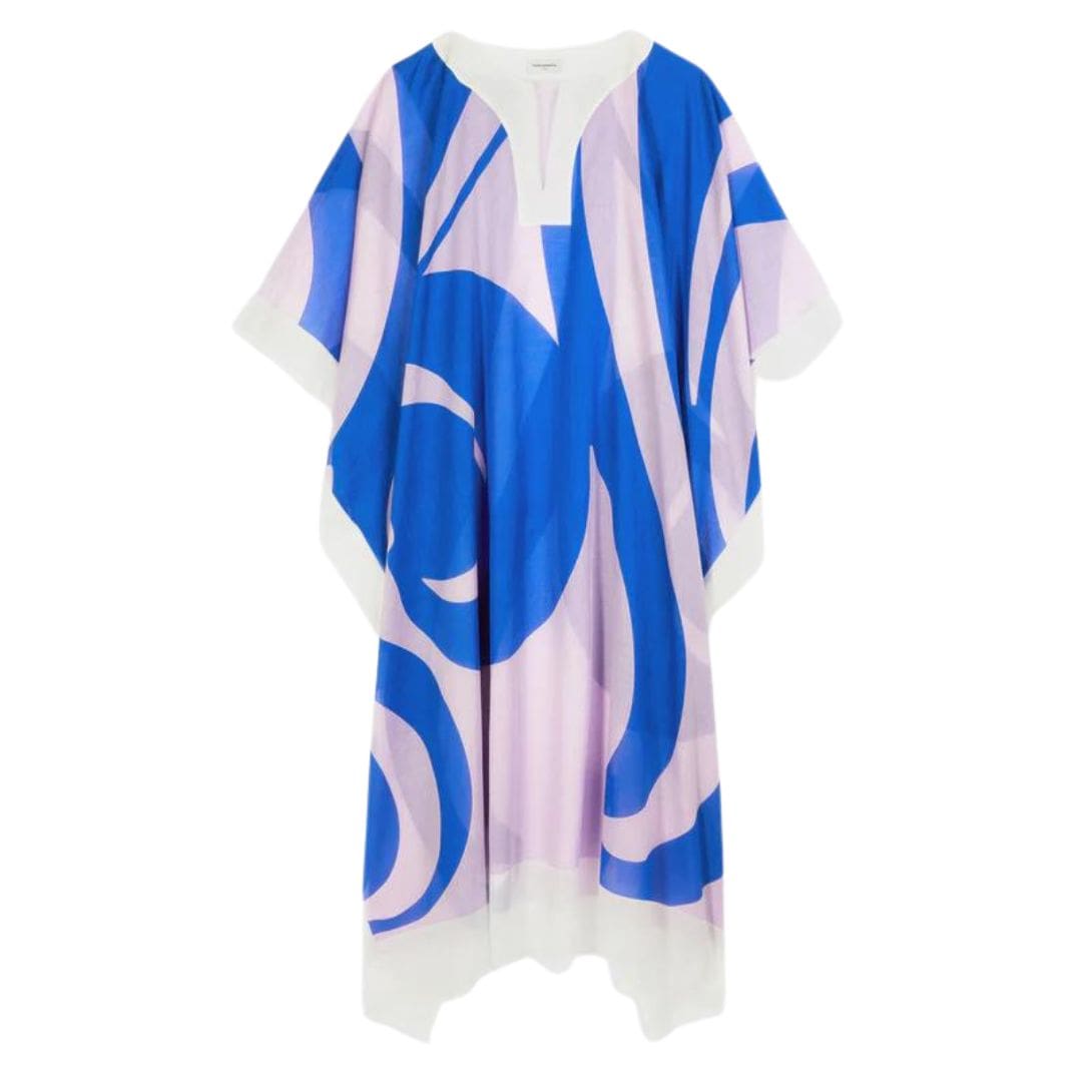 A defining feature of this piece is its printed cotton fabric, chosen for its lightweight and breathable qualities. The intricate print pattern is a testament to Dries Van Noten’s mastery in textile design, showcasing a blend of colours and motifs that evoke a sense of artistry and modernity. The print adds visual interest to the kaftan, creating a dynamic and vibrant look that stands out with understated elegance.
