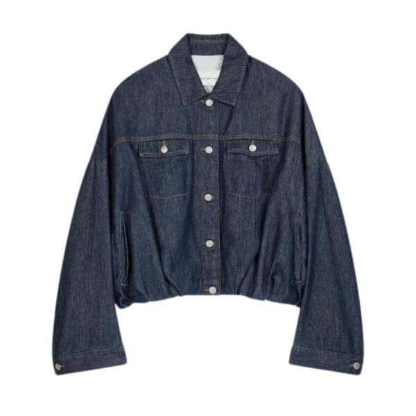 Designed with a regular fit, the blouson exudes an effortless charm, striking the perfect balance between relaxed and refined. Its cocoon shape adds a contemporary twist to the classic denim jacket silhouette, providing a unique and flattering drape that complements a variety of body types.
