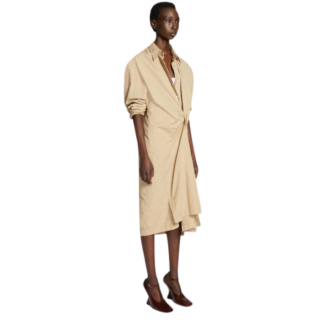 DRIES VAN NOTEN DRAPED COTTON DRESS SAND