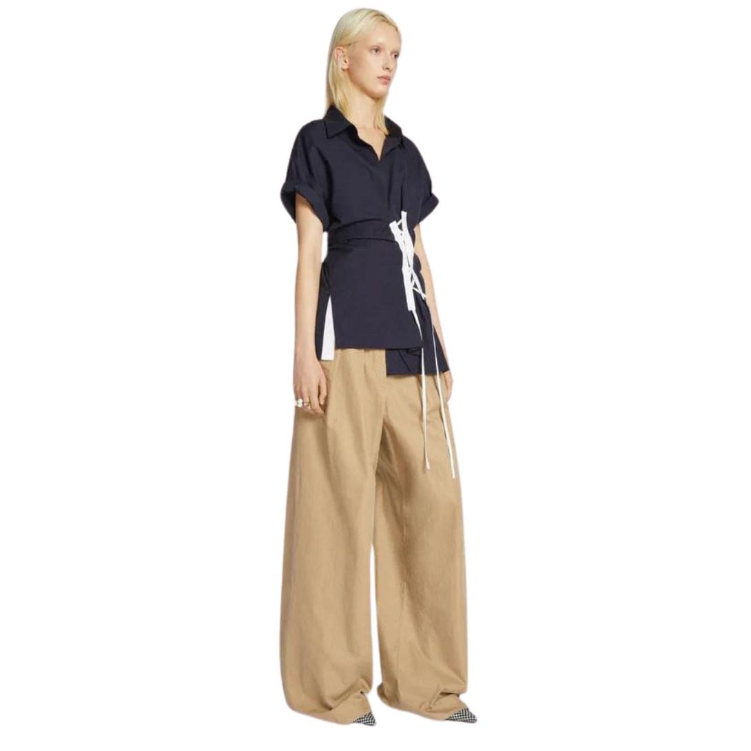 The standout feature of this piece lies in its intricate lace detailing, strategically placed to create a striking contrast against the smooth cotton backdrop. The delicate lace not only adds a touch of femininity and refinement but also enhances the shirt’s visual appeal with its intricate patterns and textures. This juxtaposition of textures – the crisp cotton and the intricate lace – exemplifies the brand’s skilful juxtaposition of elements to create a garment that is both understated and visually compelling.