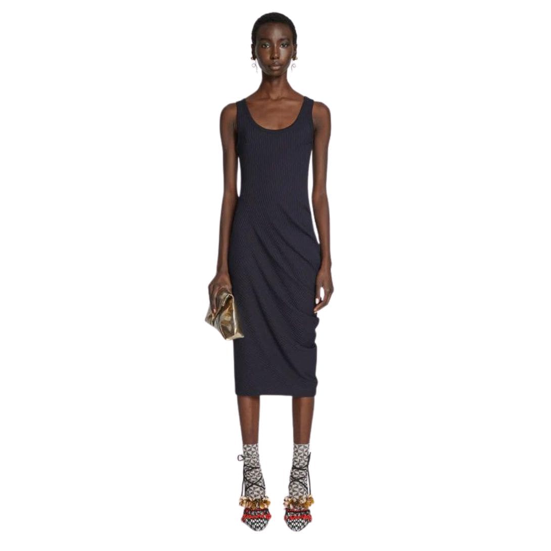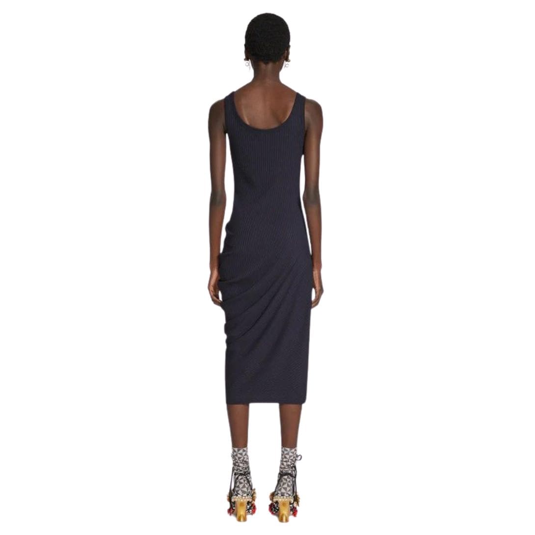 Overall, the Dries Van Noten tank top dress in rib jersey with drape detail on the hip epitomizes modern sophistication and effortless style. Elevate your wardrobe with this versatile piece that combines comfort, elegance, and contemporary design for every occasion.