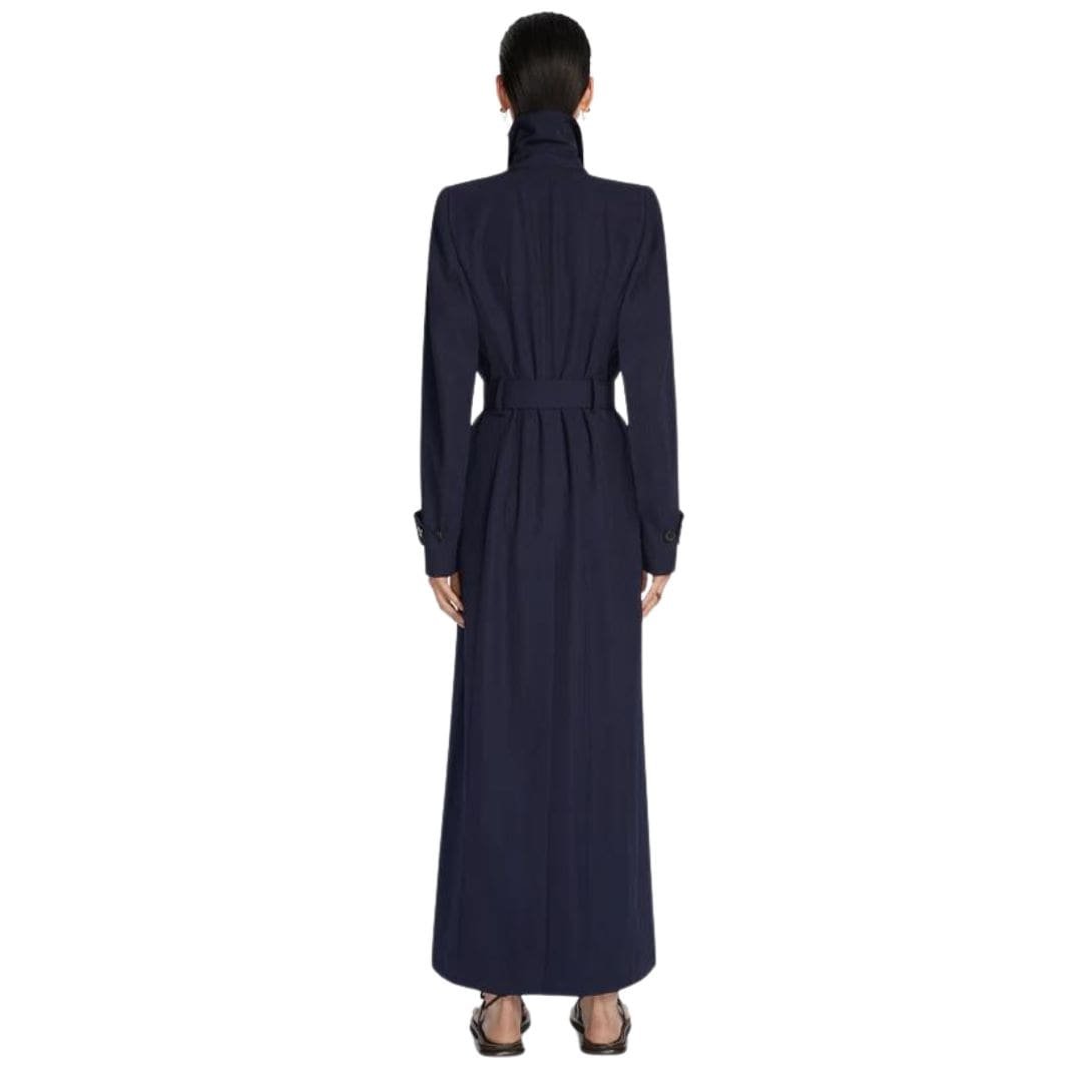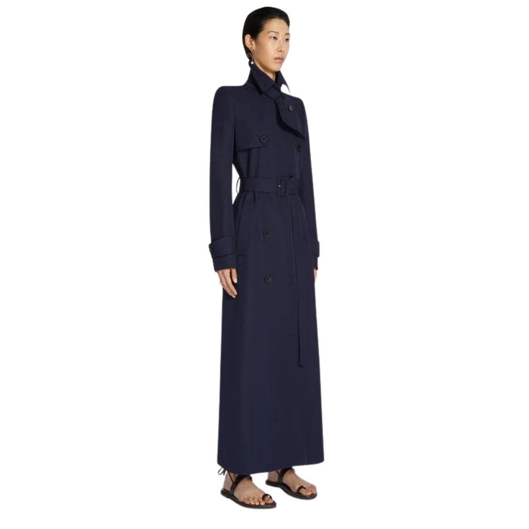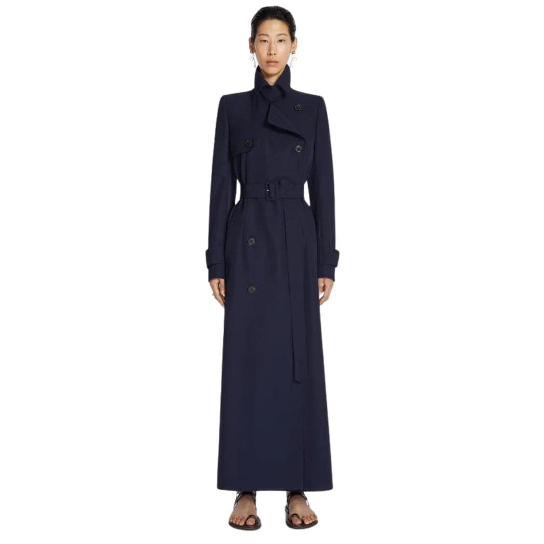 Introducing the epitome of refined sophistication: the Dries Van Noten Fitted Trench Coat Navy. Crafted with a meticulous blend of 55% polyester and 45% wool, this garment exudes both luxury and practicality, promising enduring comfort and timeless style.