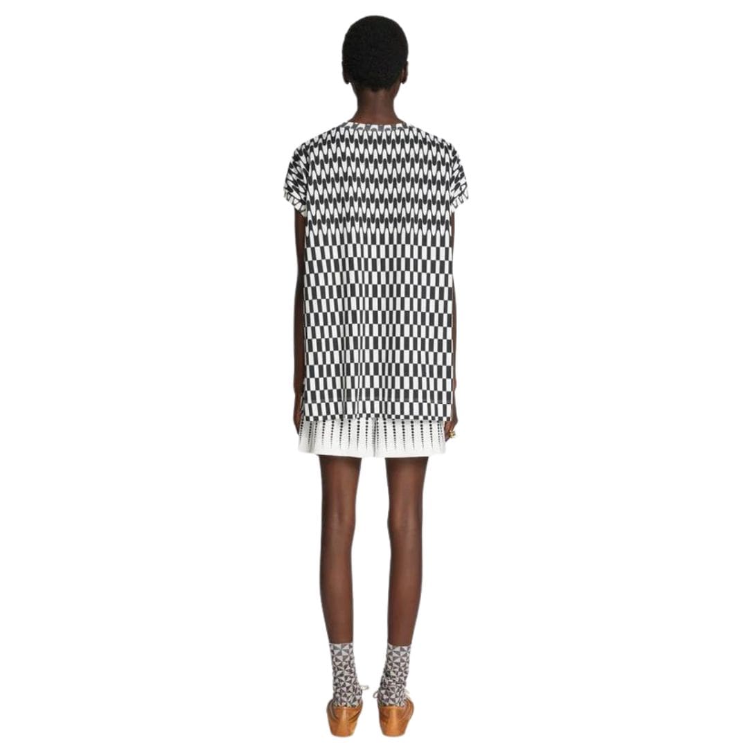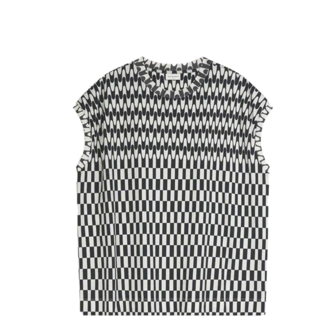 Dries Van Noten Oversized Cotton Tee Black. is a stylish and comfortable addition to any wardrobe. Crafted from 100% lightweight cotton, this tee features a bicolour ‘Graphic Waves’ print, cup sleeves, an oversized fit, and a classic crew neck. To keep it looking its best, follow this detailed care guide.