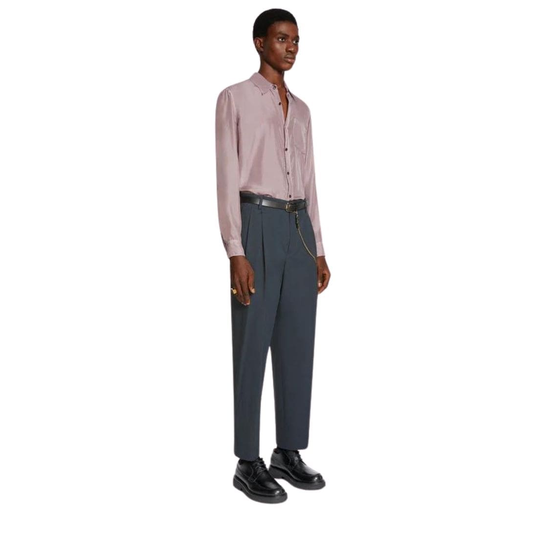 These Dries Van Noten pleated pants exemplify the brand’s fusion of modern sophistication and timeless elegance. Meticulously crafted, they feature delicate pleats that create a graceful drape, enhancing the fluidity of movement. With a mid-rise waist and a relaxed fit through the leg, these pants offer both comfort and style. The inclusion of side slit pockets and back welt pockets adds a touch of practicality to the design, while the subtle detailing of belt loops and a front closure ensures a polished finish. Whether dressed up with heels and a blouse for a chic evening look or paired with sneakers and a sweater for a casual outing, these pleated pants effortlessly elevate any ensemble.