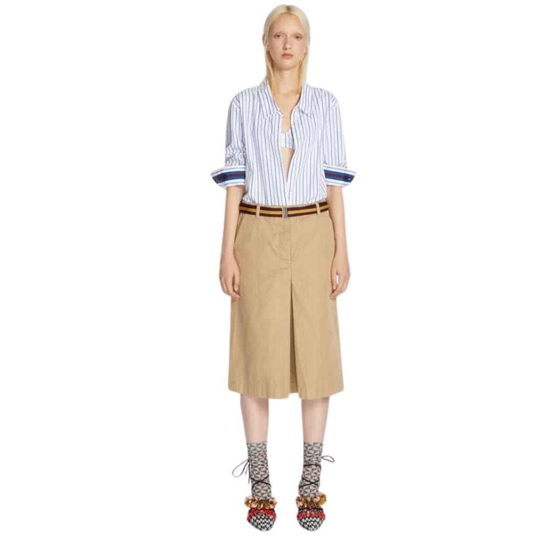 A distinctive feature of this shirt is the contrast ribbon detail on the cuffs, which adds a subtle yet impactful touch of sophistication. This thoughtful design element enhances the overall aesthetic appeal while showcasing Dries Van Noten’s mastery in incorporating unique accents into traditional garments.
