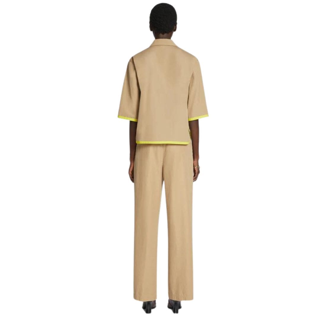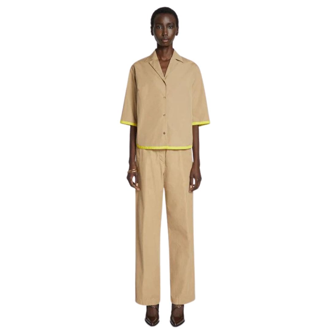 Immerse yourself in the understated sophistication of the DRIES VAN NOTEN SHORT SLEEVE SHIRT BEIGE, meticulously crafted from cotton and adorned with contrast tape borders. This piece exemplifies the Belgian designer’s commitment to blending contemporary detailing with classic tailoring.