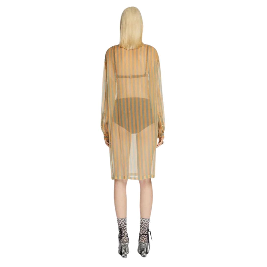 Overall, the Dries Van Noten loose-fit straight dress in sheer striped silk epitomizes modern sophistication and timeless appeal. Elevate your wardrobe with this luxurious piece that promises comfort, versatility, and undeniable elegance for every occasion.