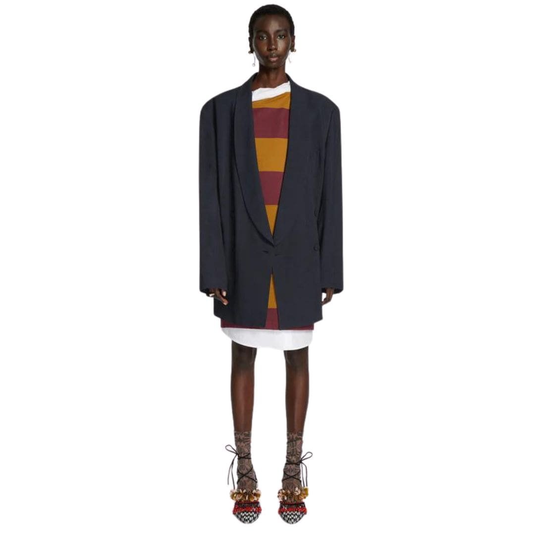 Indulge in the epitome of luxury with the Dries Van Noten Tuxedo Blazer Anthracite, meticulously crafted from a blend of 92% Viscose and 8% Silk, with a sumptuous 100% Viscose lining. Its oversized fit exudes effortless sophistication, while the unique scarf lapel adds a touch of opulence.