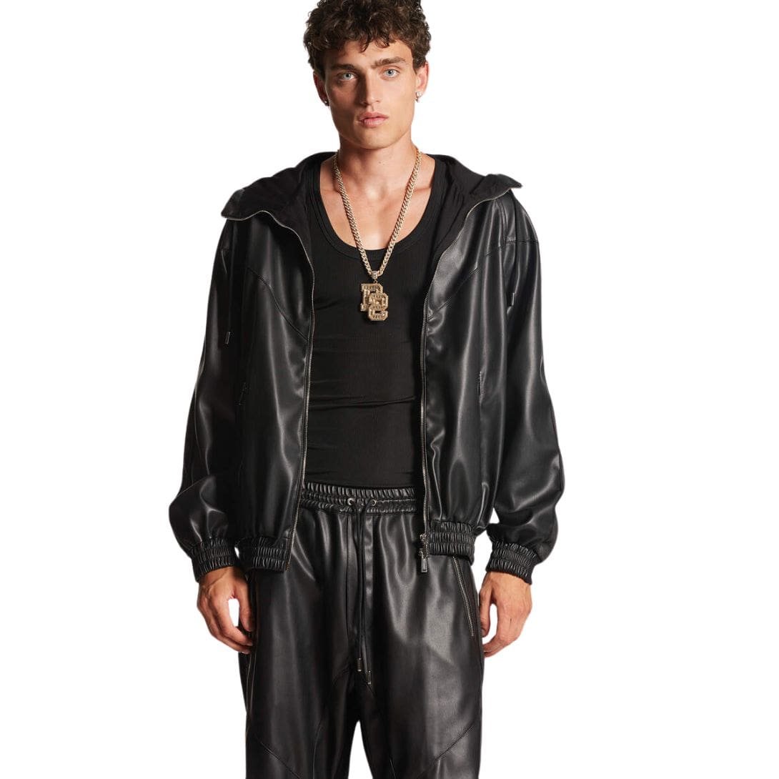 The DSquared2 Hybrid Swag Track Jacket is a manifestation of urban chic fused with high-fashion sensibilities. Crafted with meticulous attention to detail, this jacket epitomizes the brand’s ethos of blending streetwear edge with luxury craftsmanship.