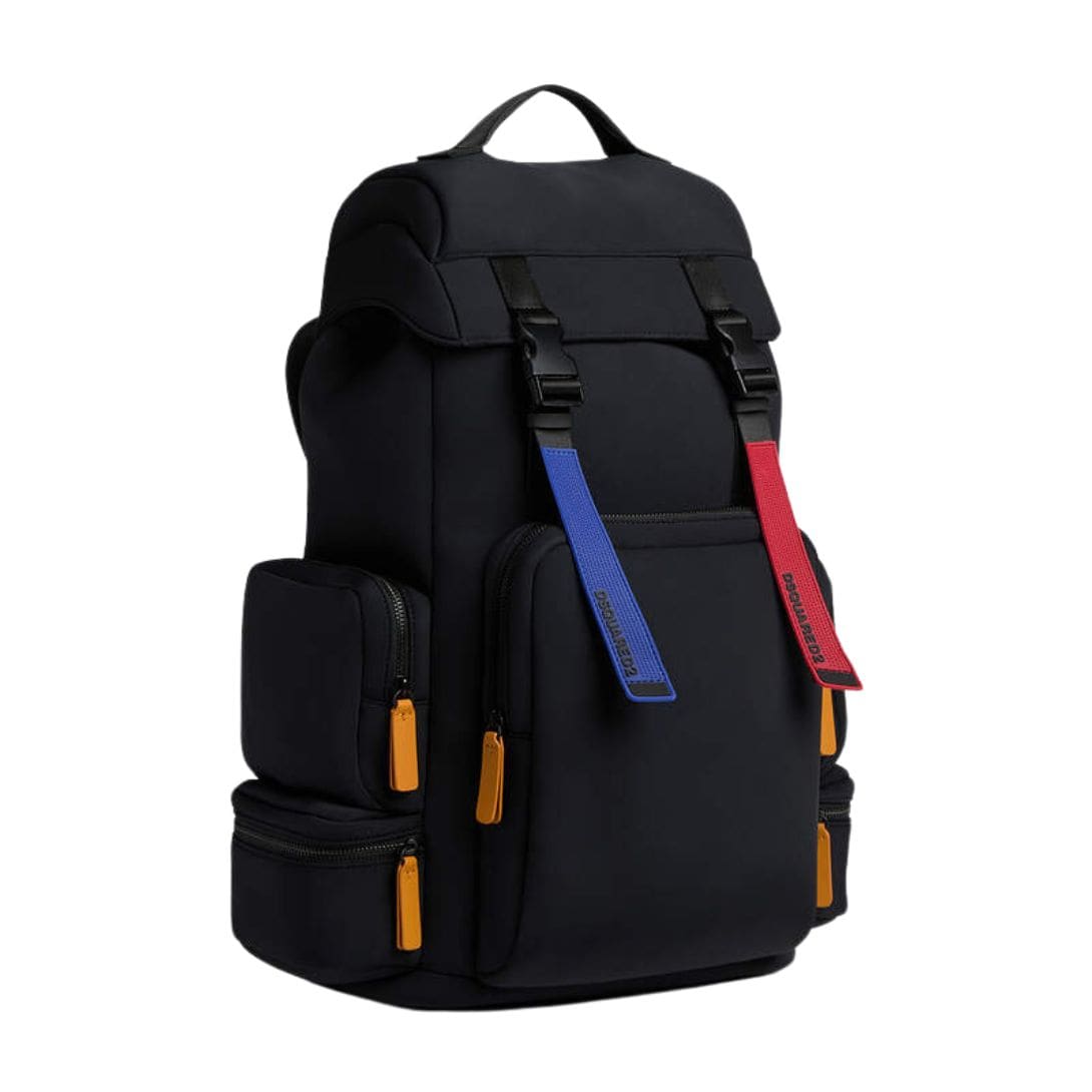 One of the standout features of the DSQUARED2 Sport Tape Backpack is its distinctive tape detailing. Bold DSQUARED2 branding runs along the backpack’s adjustable shoulder straps, adding a dynamic edge to its aesthetic. The tape detailing not only serves as a branding element but also contributes to the backpack’s athletic-inspired appeal, echoing the brand’s roots in sports and athleticism.