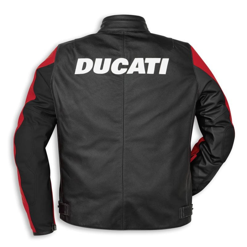 The Ducati Company C3 Leather Jacket is an urban garment made of soft cowhide. It is fully CE-certified in men’s and women’s versions according to the latest European standards. Equipped with CE-approved padding, it has a hook that allows it to be joined to the pants as well as comfortable Pro Armor protectors on the shoulders and elbows. The Ducati brand stands out thanks to the patch on the chest and the laser-cut lettering stitched on the back and the right arm.