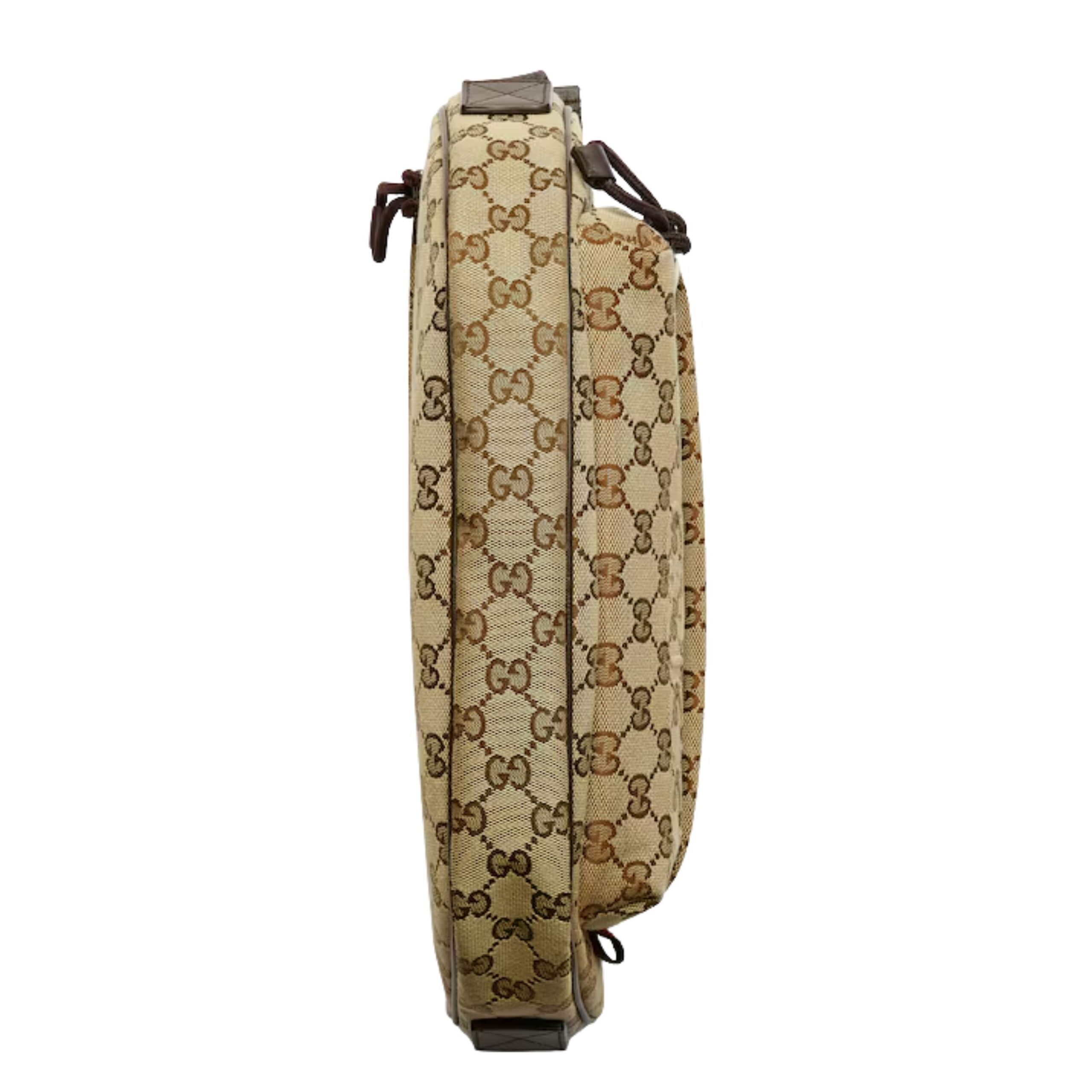 The adjustable strap provides versatile carrying options, allowing the bag to be worn comfortably across the body or over the shoulder, adapting effortlessly to your lifestyle. The sleek silhouette and iconic GG canvas pattern create a timeless aesthetic, ensuring that this bag complements a variety of outfits, from casual streetwear to chic urban ensembles.
