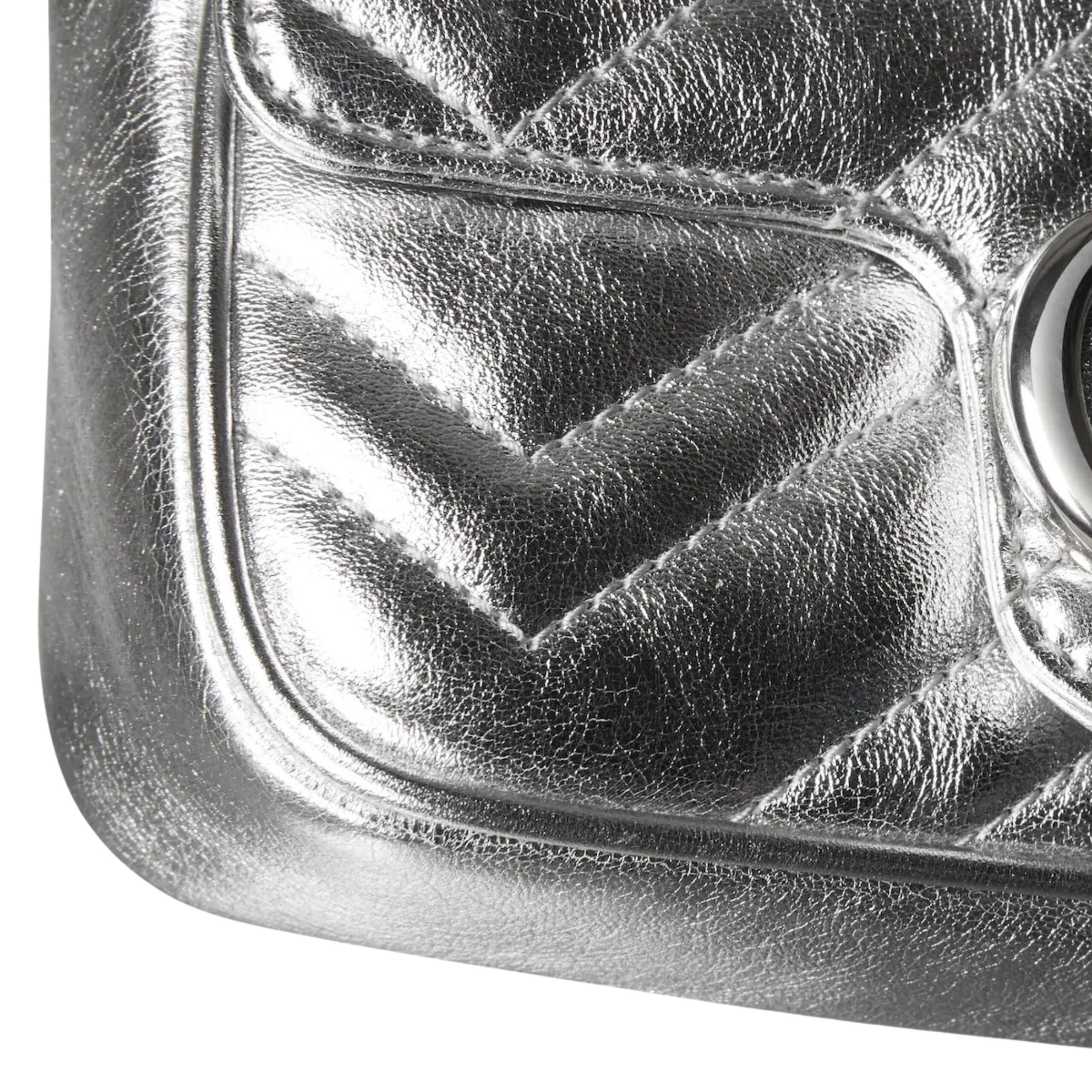 The bag features the signature GG Marmont logo, instantly recognizable as a symbol of elegance and refinement. The soft, high-quality leather offers a luxurious touch and durability, ensuring the bag retains its pristine appearance even with regular use. Its structured yet compact silhouette makes it versatile enough to complement casual daywear or elevate an evening outfit, adding a polished finishing touch to any ensemble.