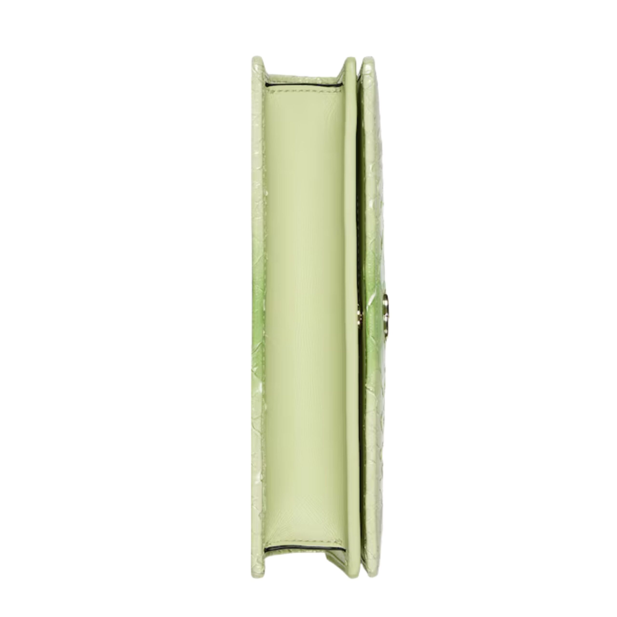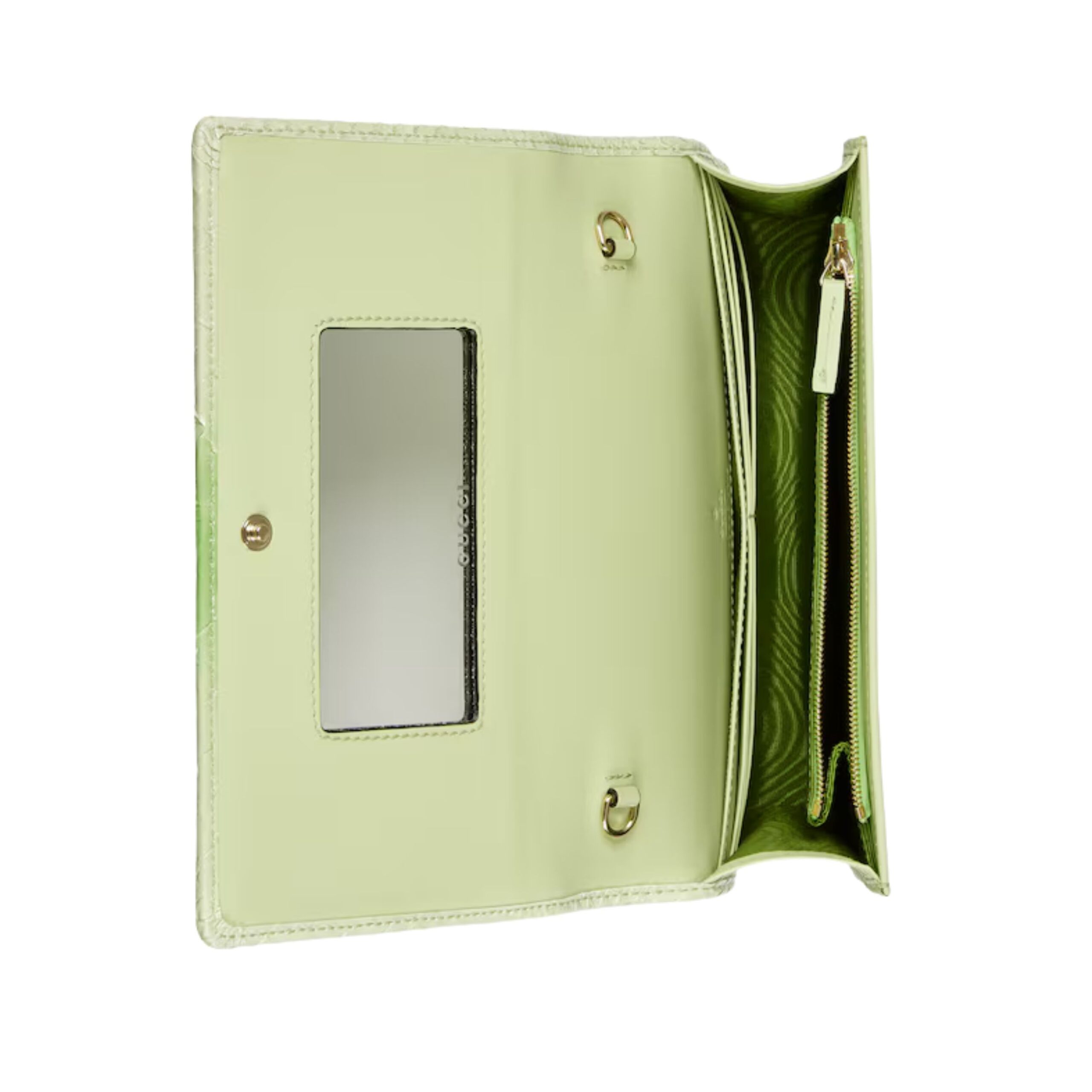 Its sleek, compact silhouette makes it ideal for both day and evening wear, while the versatile design allows it to be styled as a clutch, crossbody, or wallet, offering endless styling possibilities. The signature GG Marmont emblem in antique gold adds a touch of heritage charm, highlighting Gucci’s iconic aesthetic and meticulous attention to detail.
